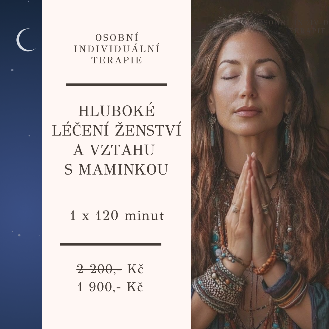 Provedu vás cestou hlubšího porozumění sebe sama. Naučím vás nacházet soucit k sobě samé, porozumět vztahu s maminkou, odpustit minulosti a provedu vás hlubokou transformací a restartem života.