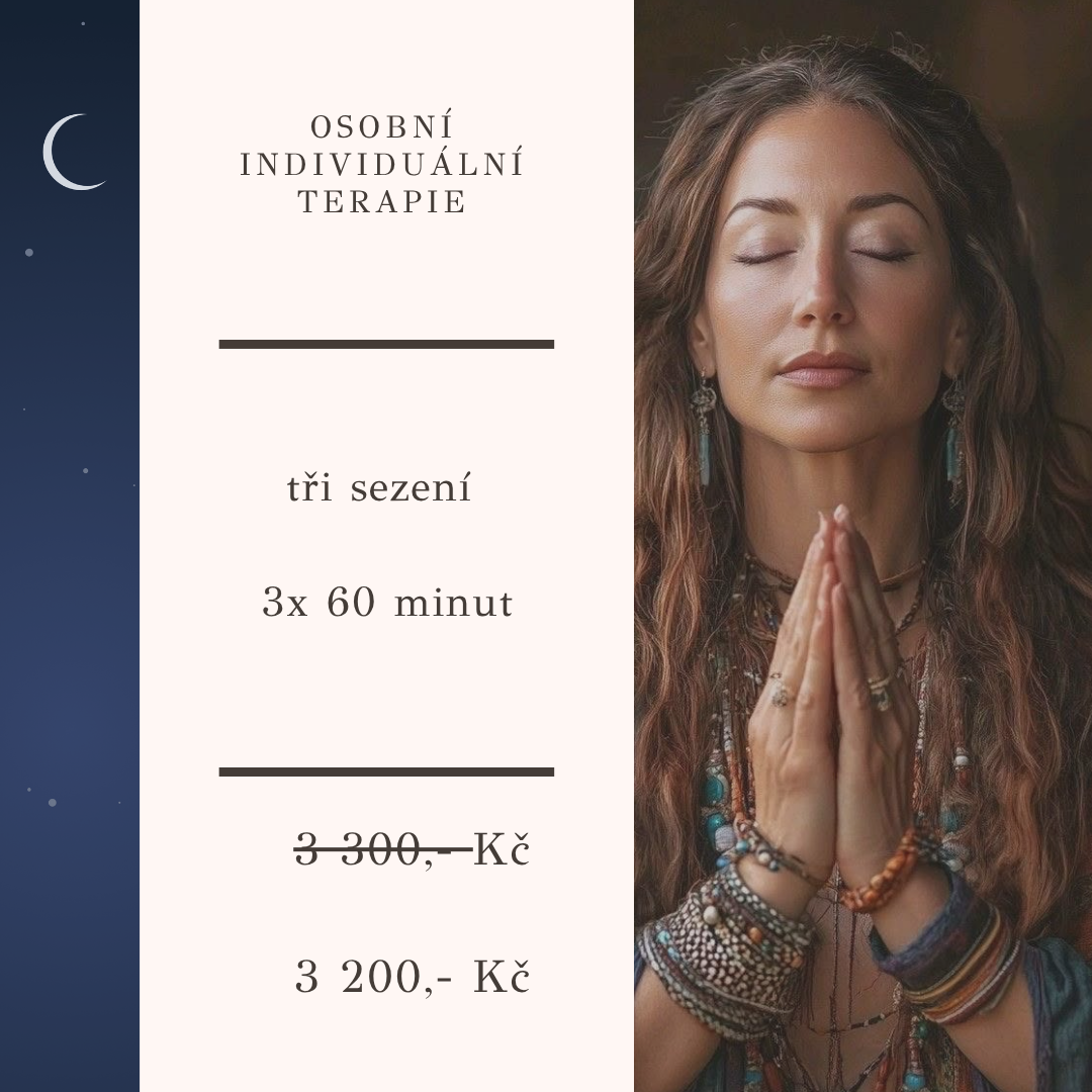 - cena každého sezení odráží nejen čas, ale i moji plnou přítomnost, zkušenosti a individuální přístup. Každé setkání je jedinečné, podle potřeby se věnujme tělu, emocím, psychice a energii.