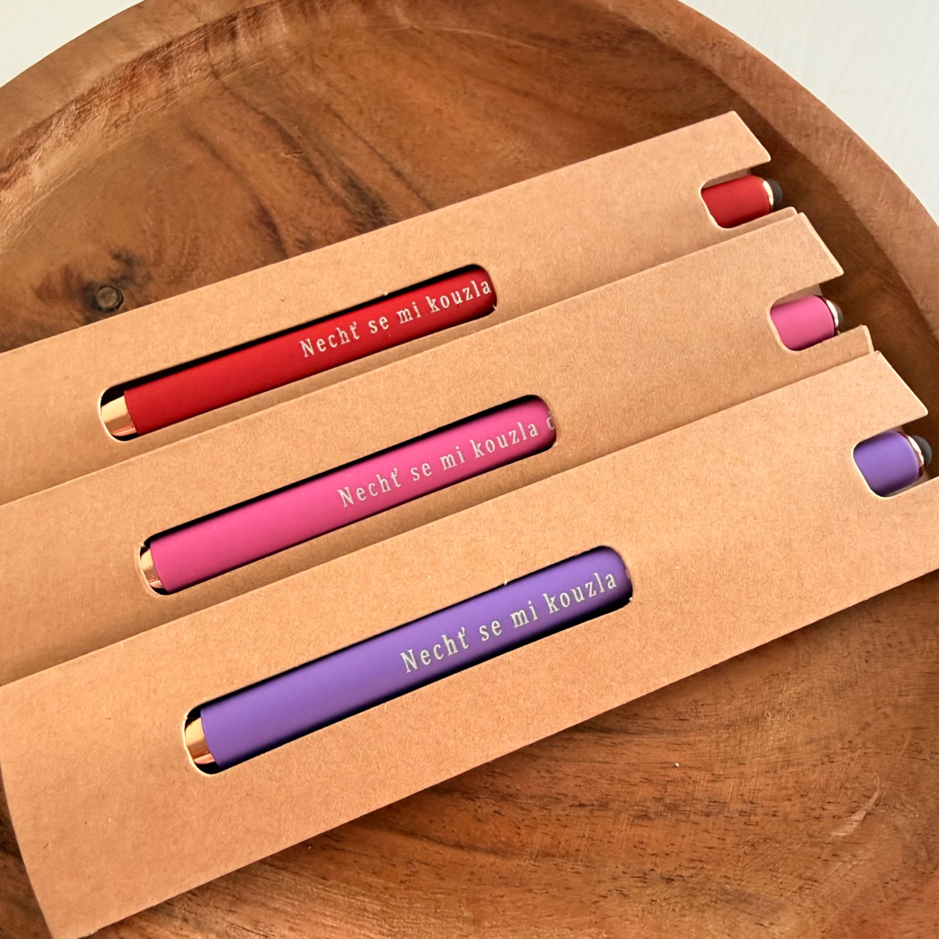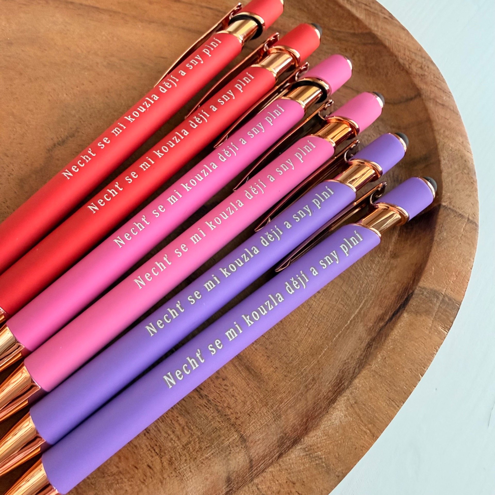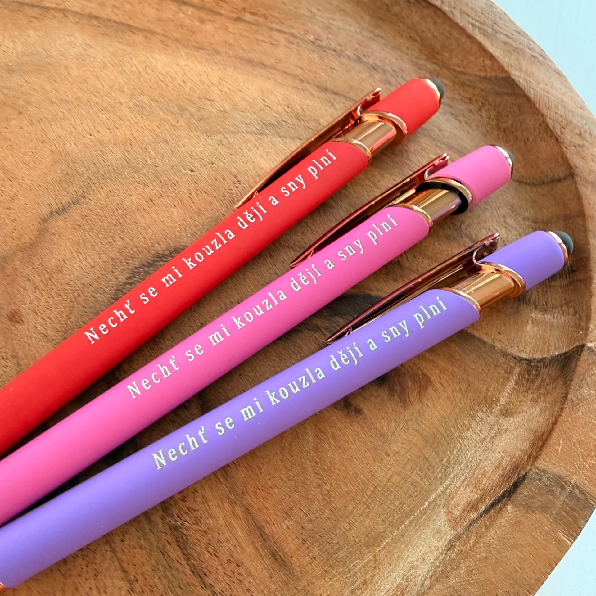 Elegantní propiska s dotykovým hrotem, která nese poselství z hloubi mého srdce: "Nechť se kouzla dějí a sny plní."
